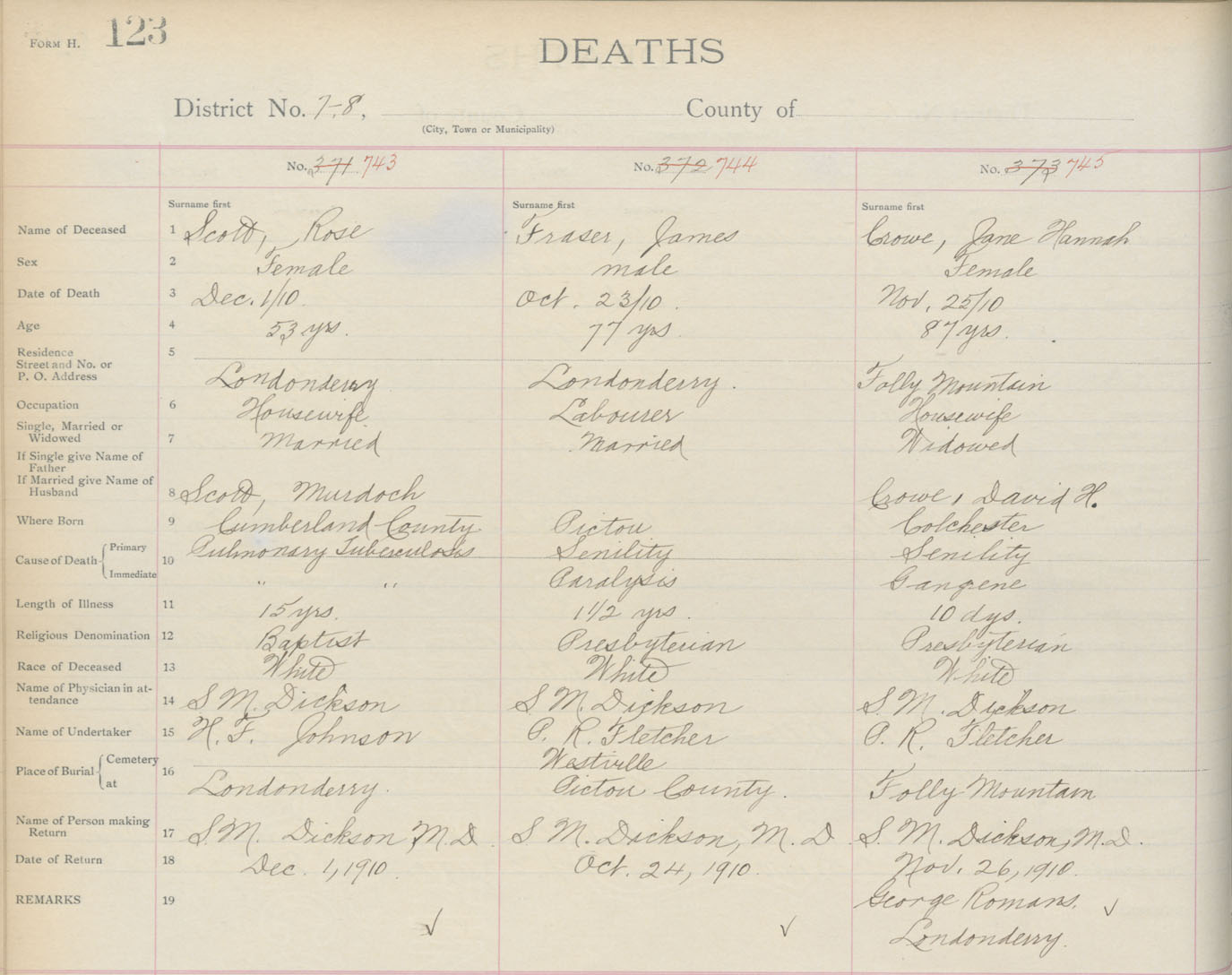 Death Registration: Year: 1910 book: 4 page: 123 number: 743