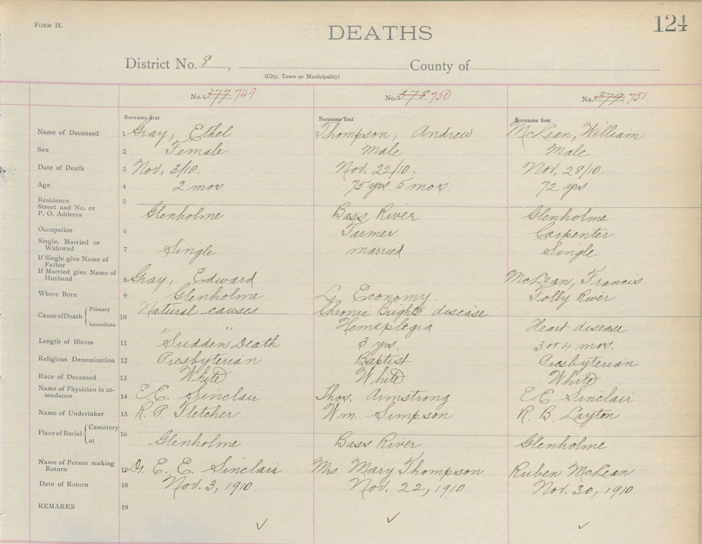 Death Registration: Year: 1910 book: 4 page: 124 number: 749