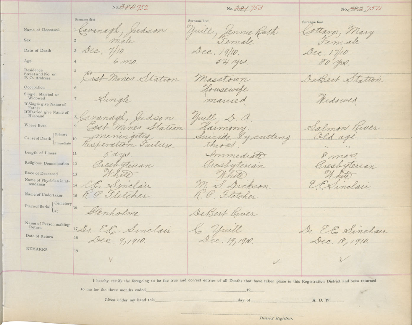 Death Registration: Year: 1910 book: 4 page: 124 number: 752