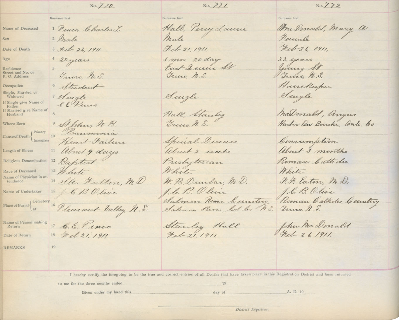 Death Registration: Year: 1911 book: 4 page: 127 number: 770