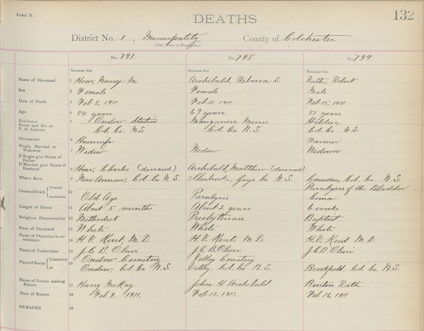 Death Registration: Year: 1911 book: 4 page: 132 number: 797