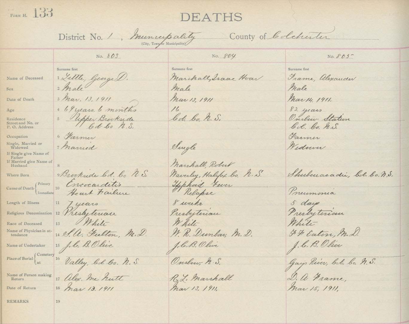 Death Registration: Year: 1911 book: 4 page: 133 number: 803