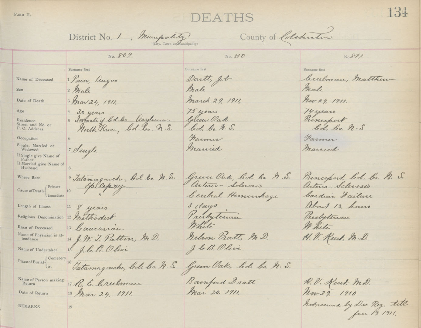 Death Registration: Year: 1911 book: 4 page: 134 number: 809