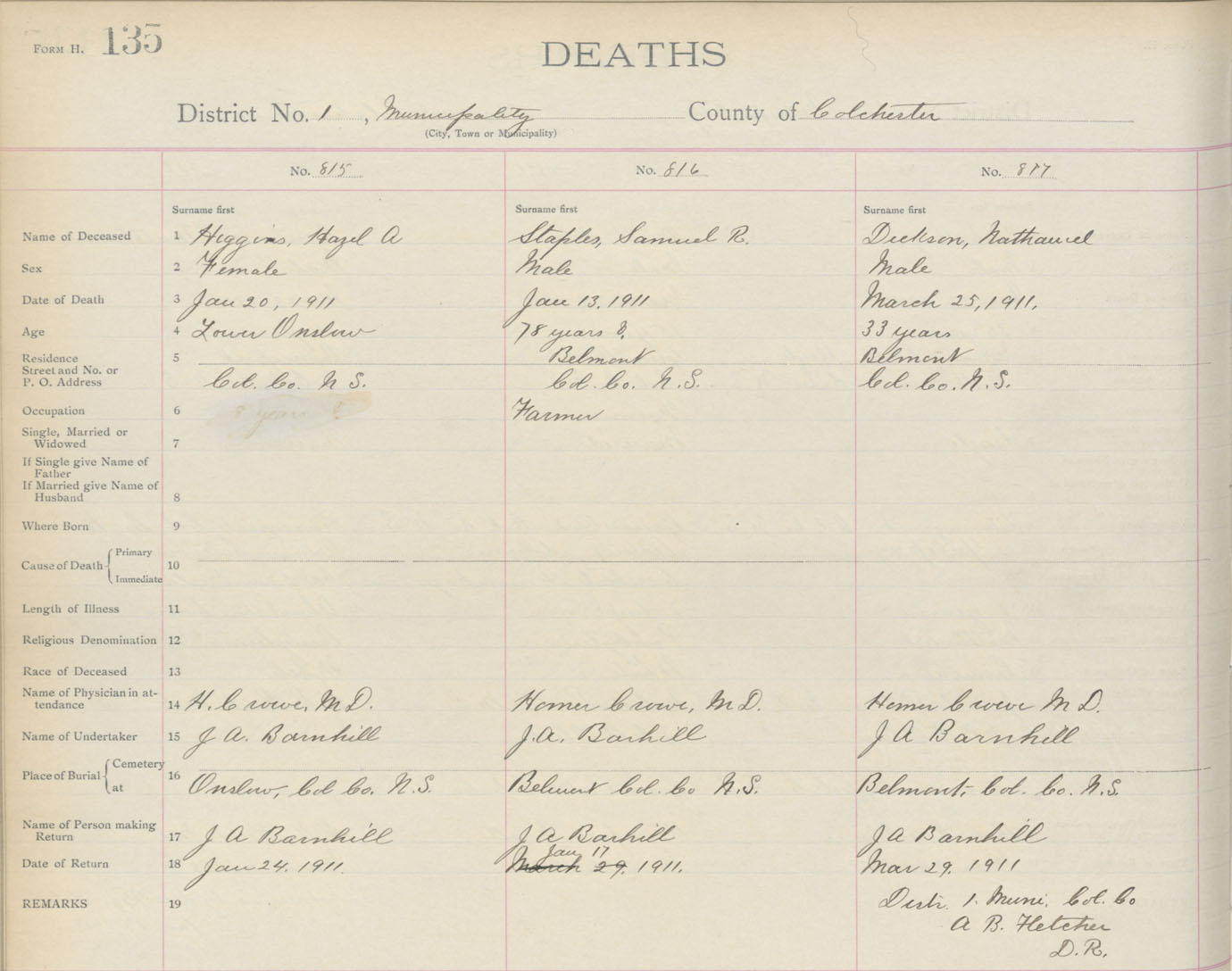Death Registration: Year: 1911 book: 4 page: 135 number: 815