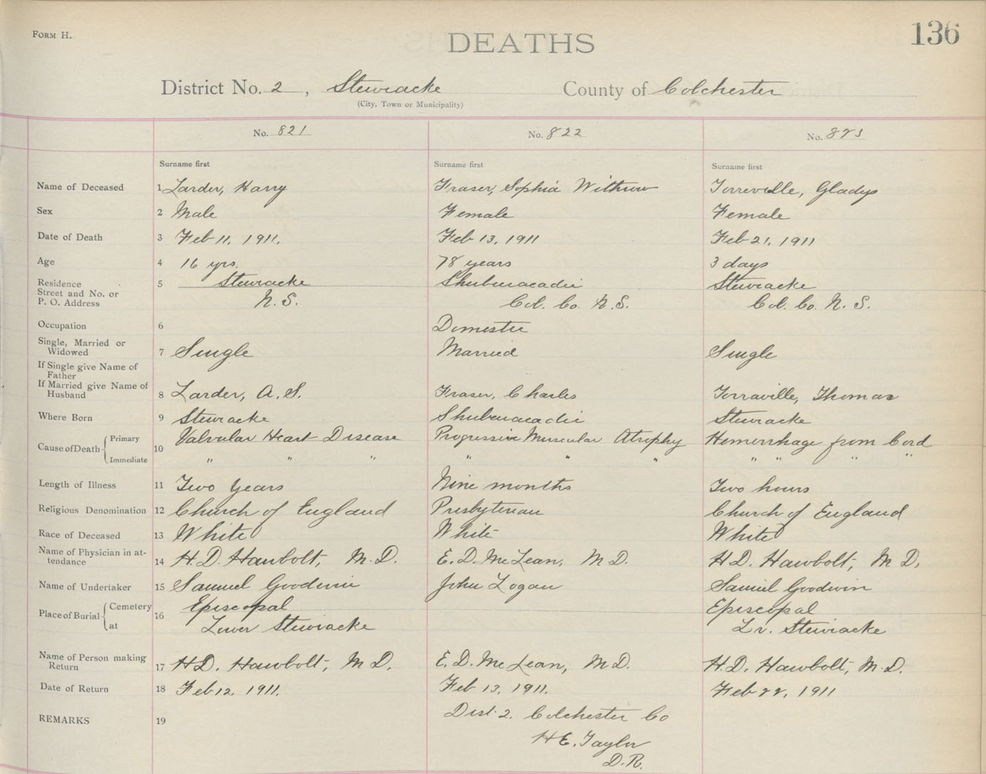 Death Registration: Year: 1911 book: 4 page: 136 number: 821