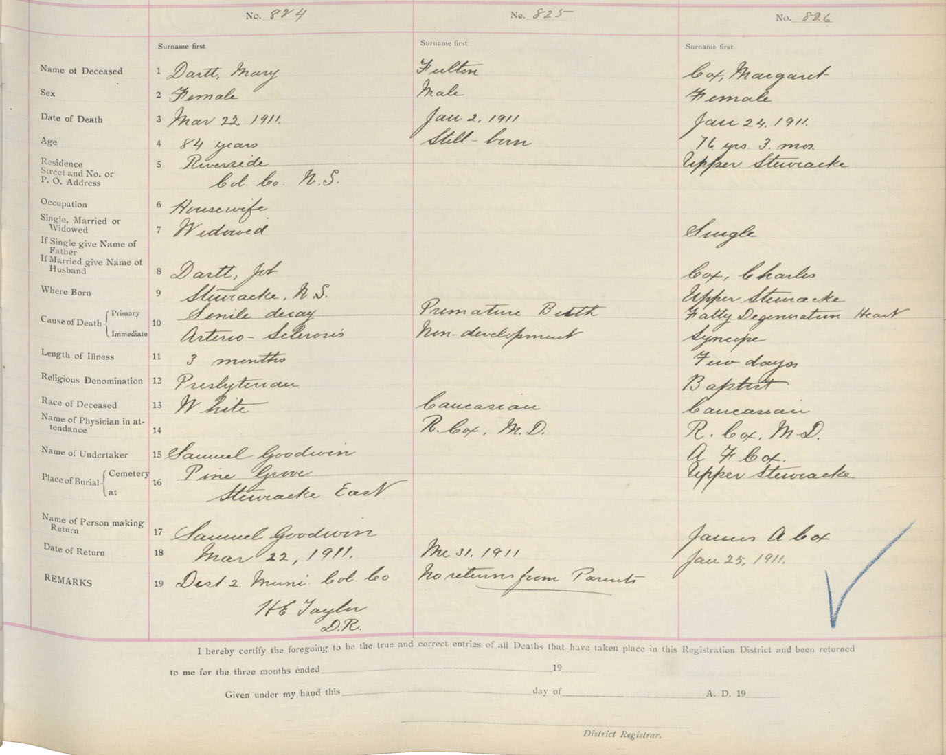 Death Registration: Year: 1911 book: 4 page: 136 number: 824