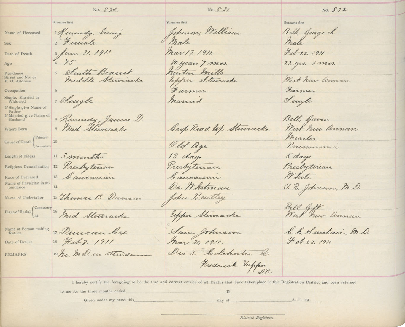 Death Registration: Year: 1911 book: 4 page: 137 number: 830