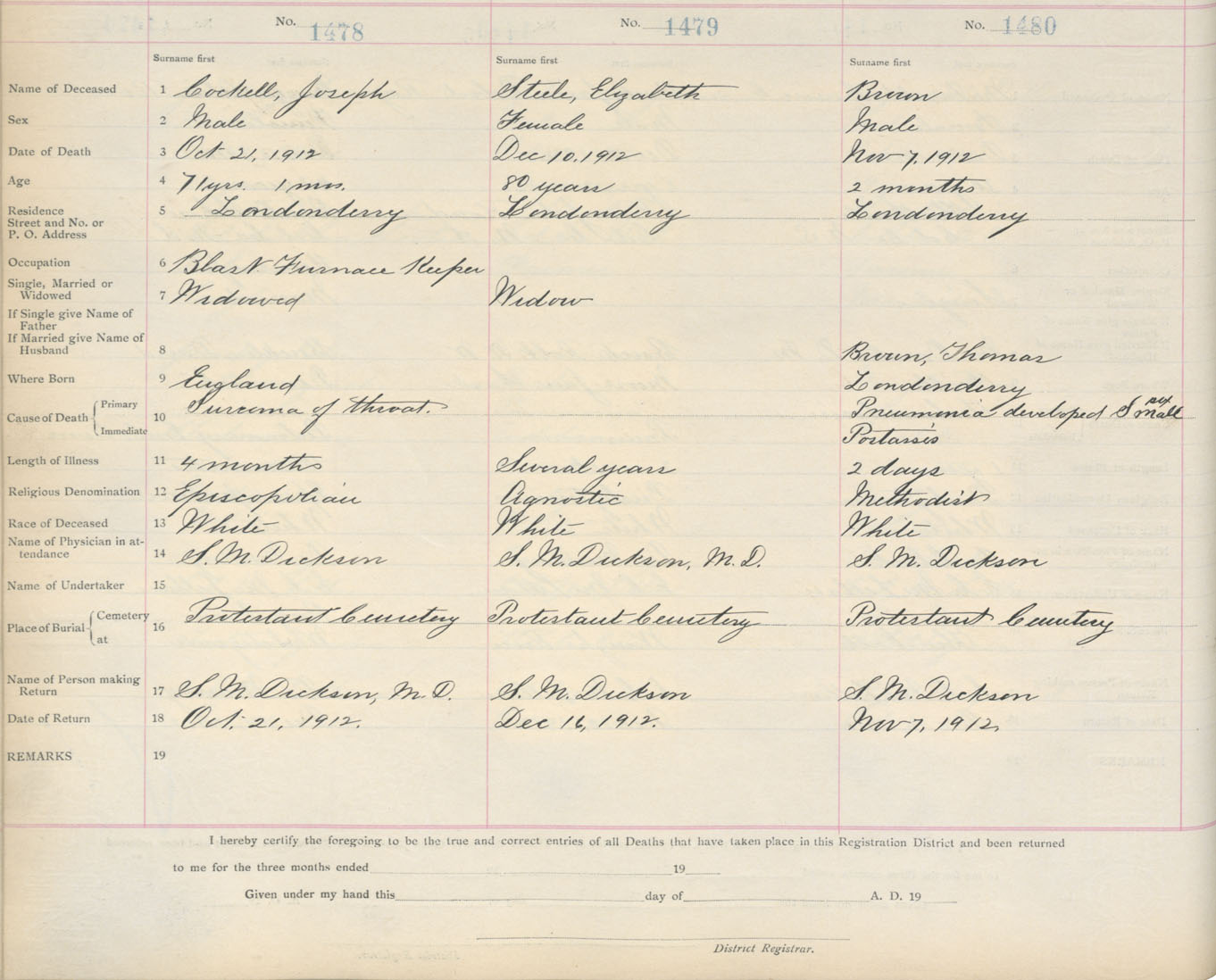 Death Registration: Year: 1912 book: 4 page: 245 number: 1479