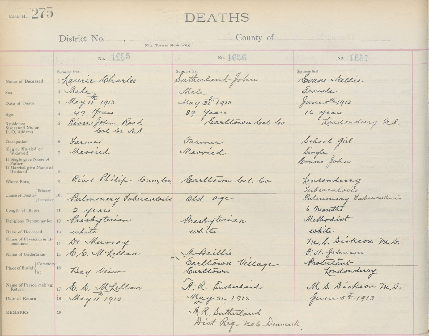 Death Registration: Year: 1913 book: 4 page: 275 number: 1657