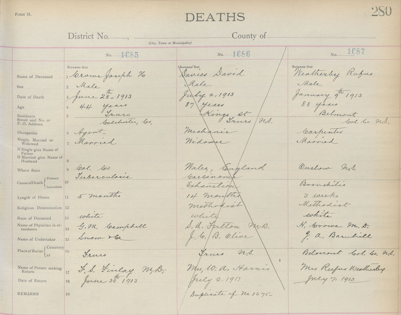 Death Registration: Year: 1913 book: 4 page: 280 number: 1687