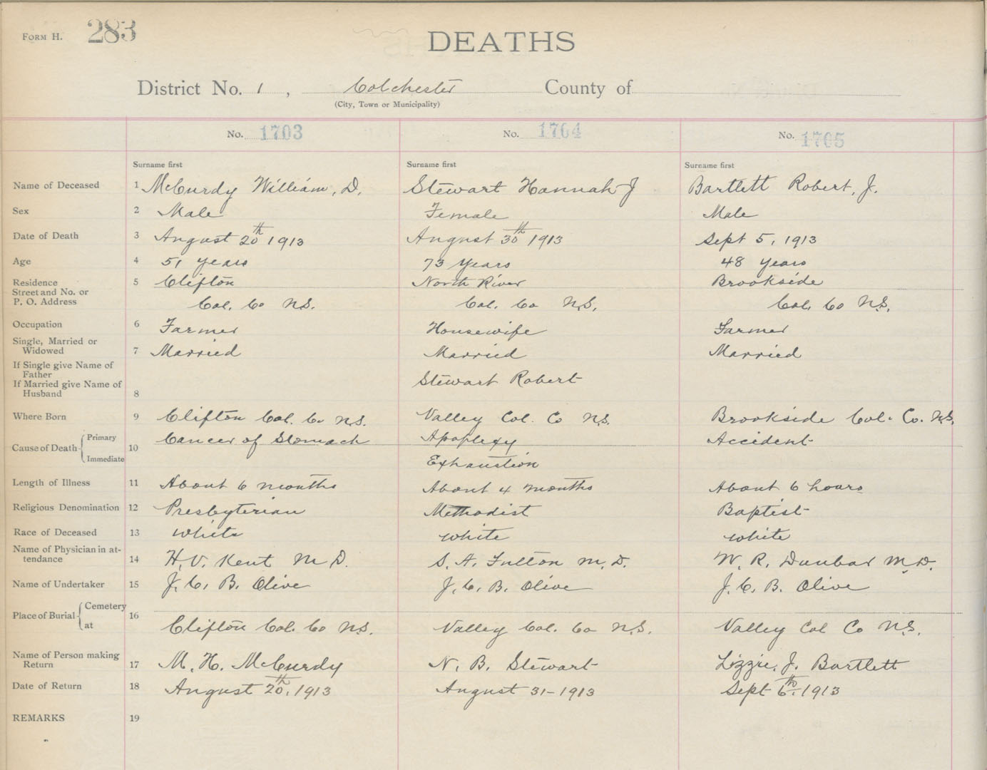 Death Registration: Year: 1913 book: 4 page: 283 number: 1705