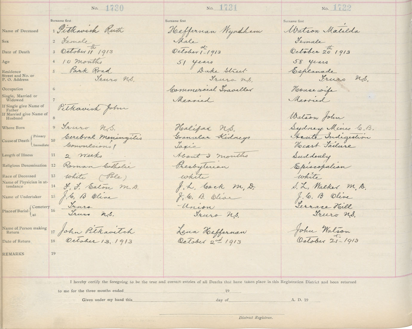 Death Registration: Year: 1913 book: 4 page: 287 number: 1732