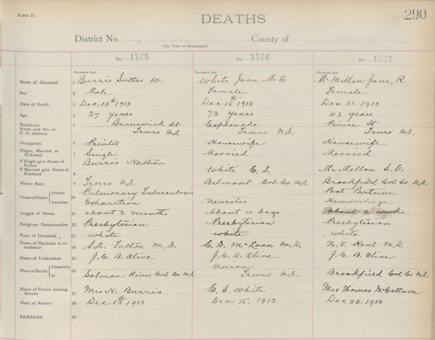 Death Registration: Year: 1913 book: 4 page: 290 number: 1747