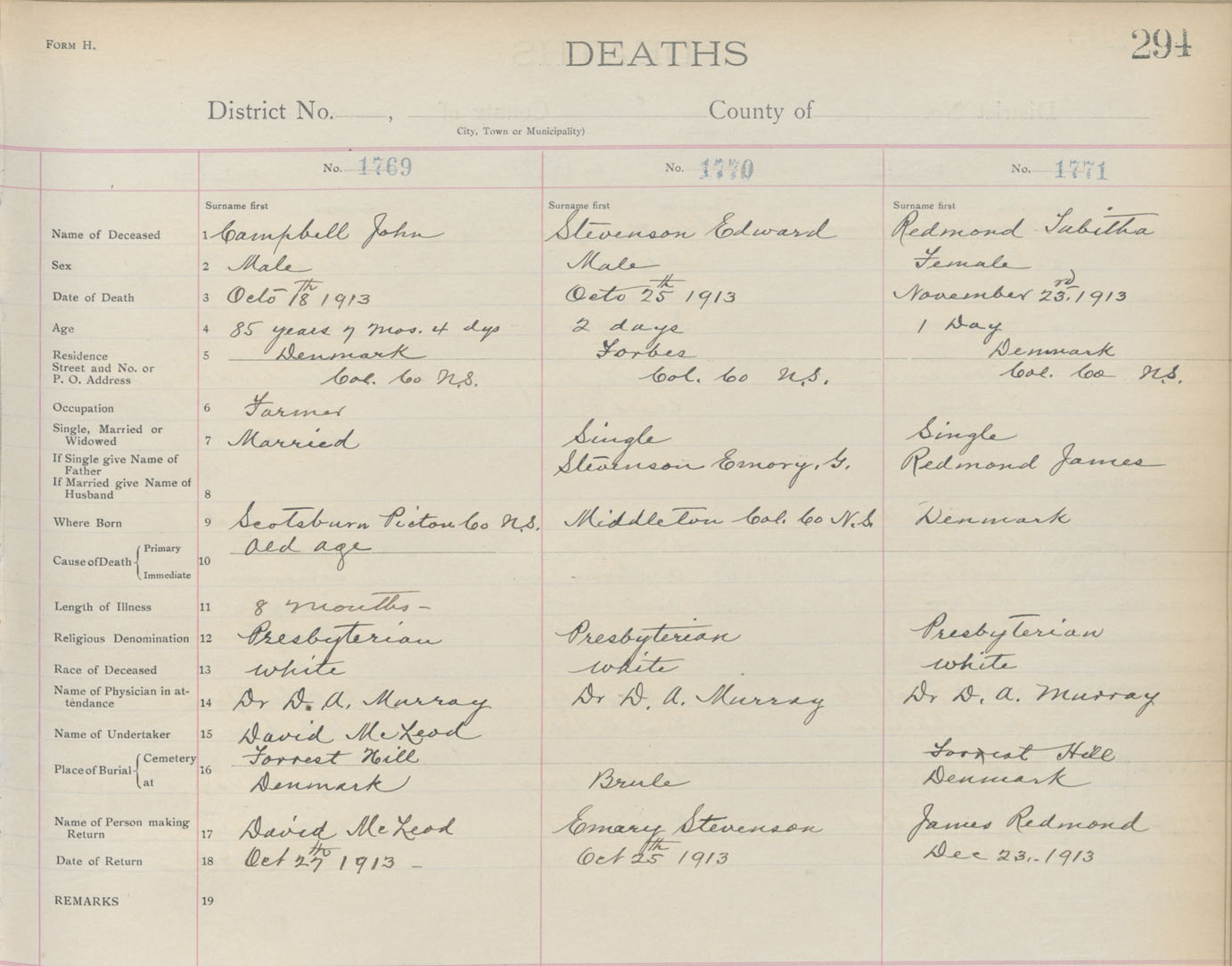 Death Registration: Year: 1913 book: 4 page: 294 number: 1771