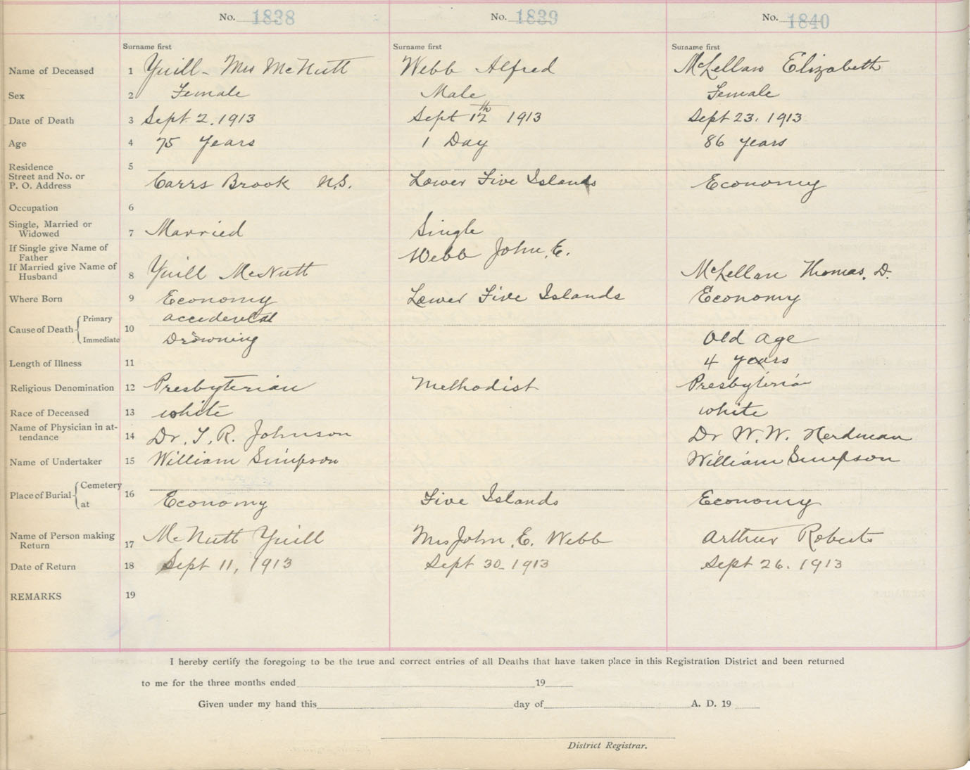 Death Registration: Year: 1913 book: 4 page: 305 number: 1840