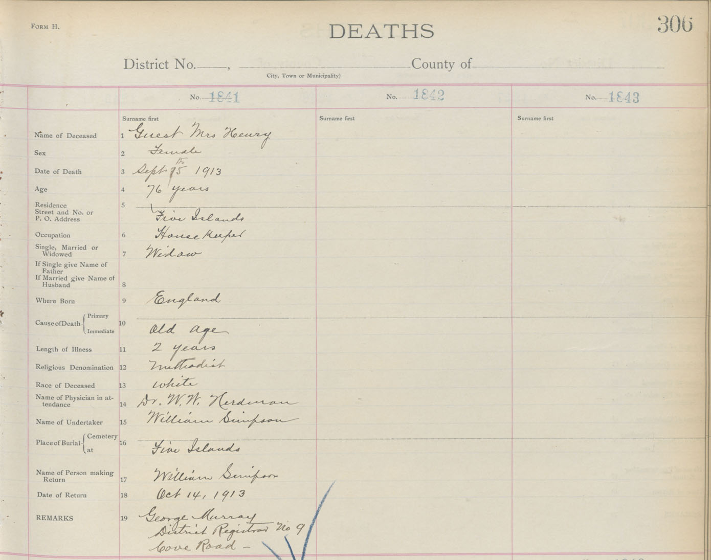 Death Registration: Year: 1913 book: 4 page: 306 number: 1841