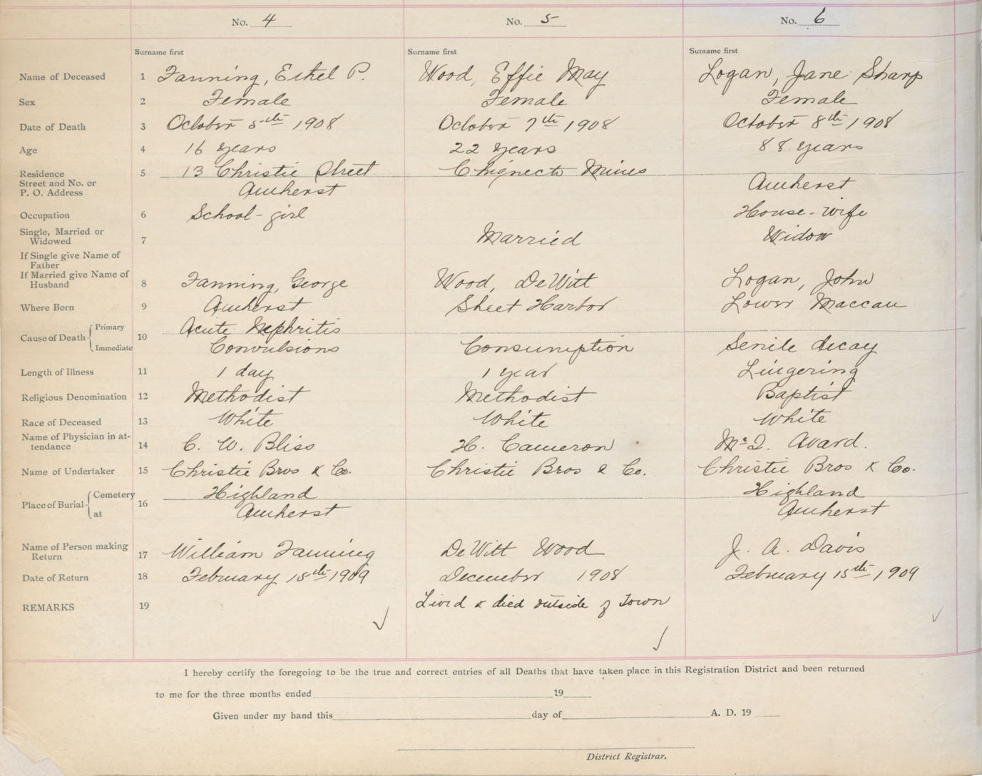 Death Registration: Year: 1908 book: 5 page: 1 number: 6