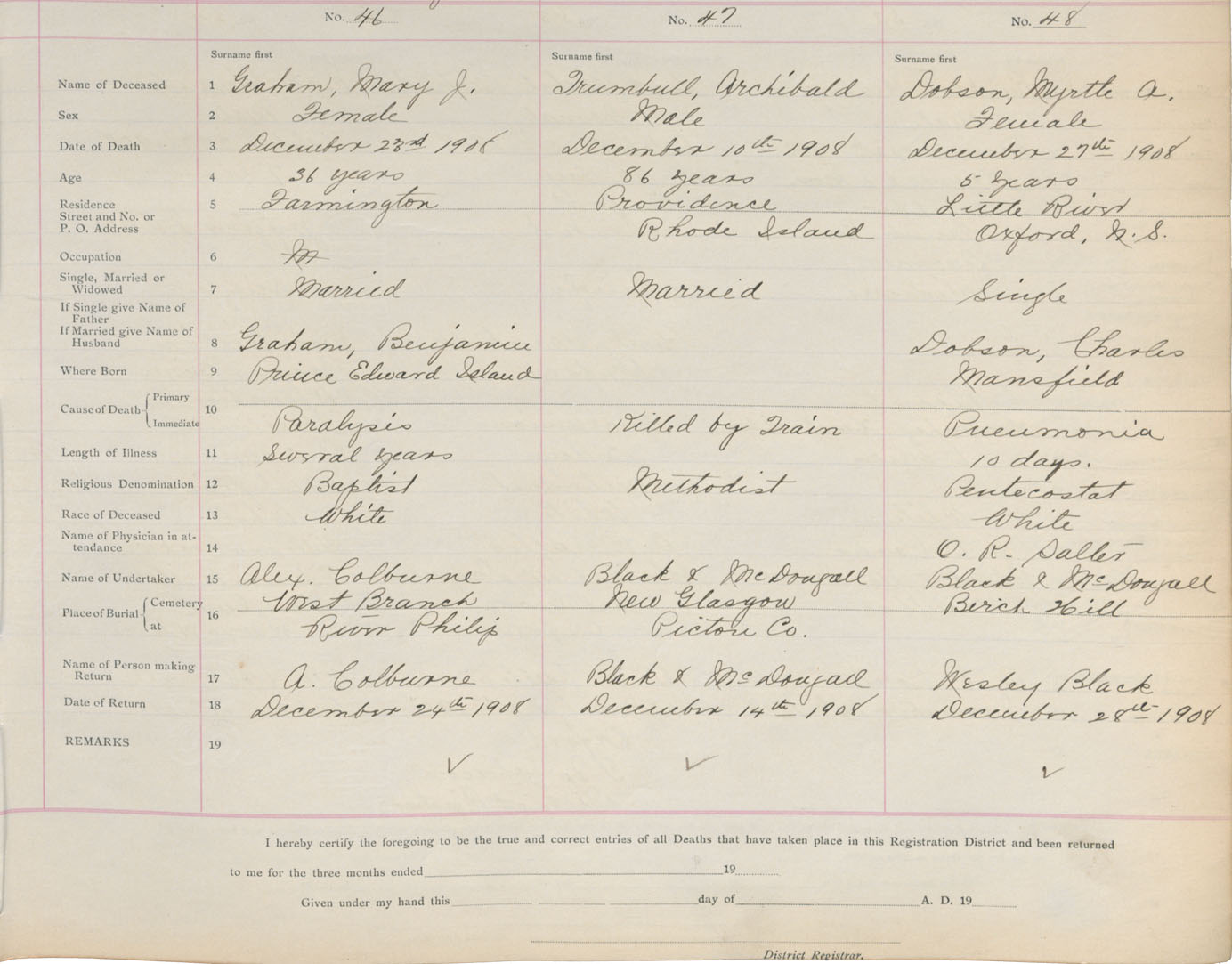 Death Registration: Year: 1908 book: 5 page: 8 number: 46