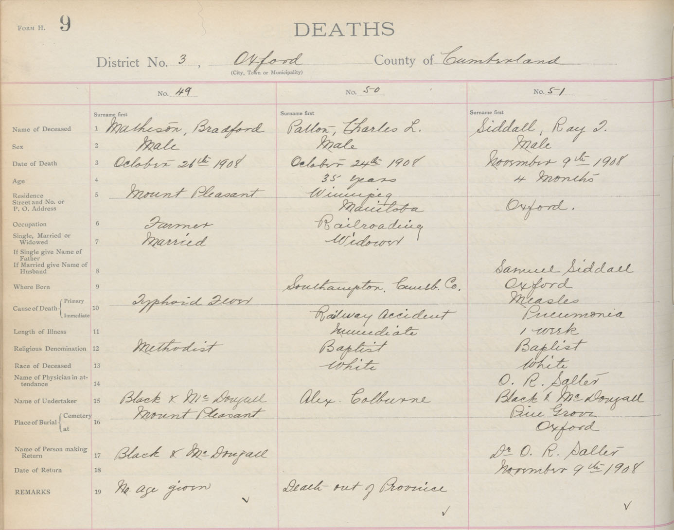 Death Registration: Year: 1908 book: 5 page: 9 number: 49