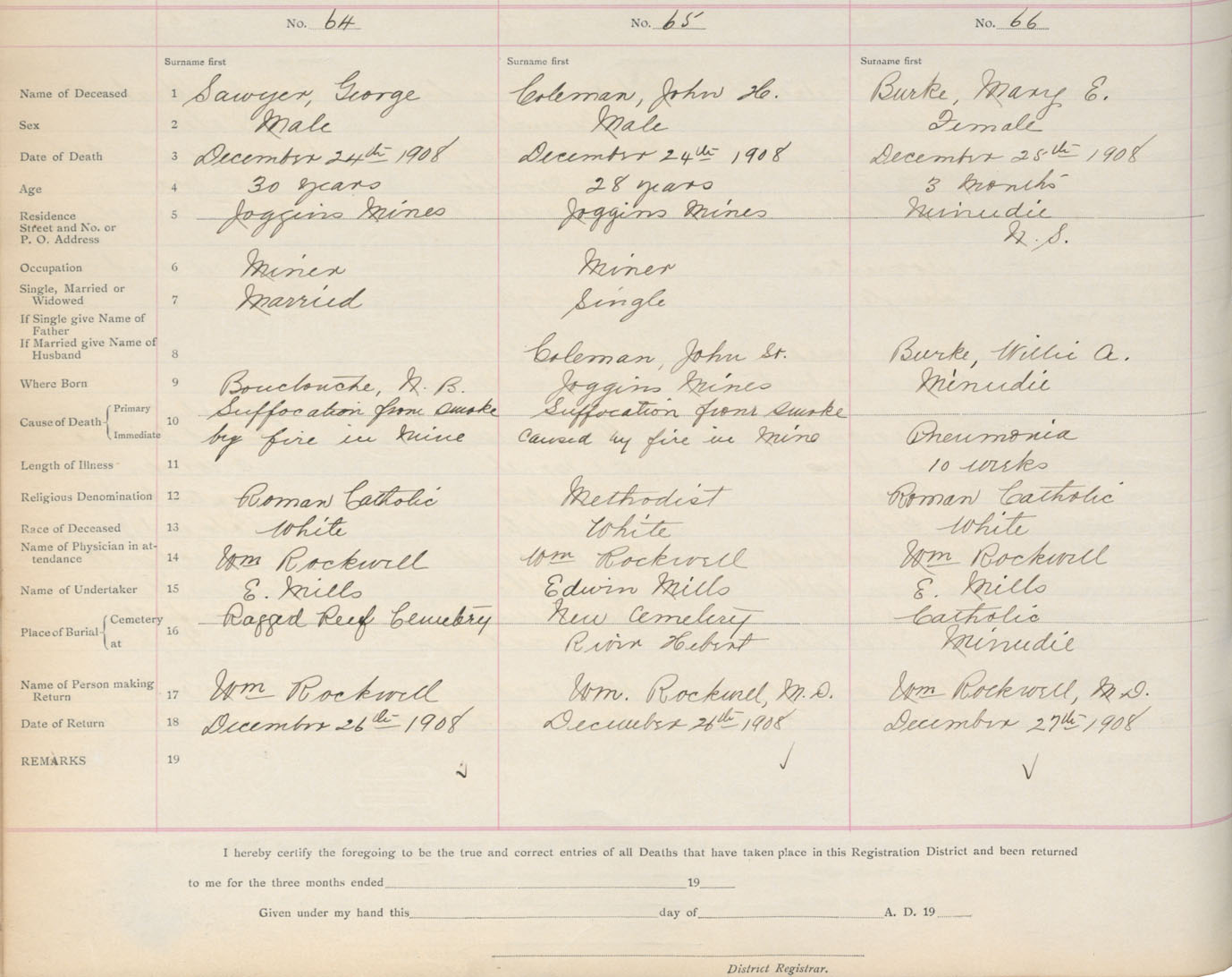 Death Registration: Year: 1908 book: 5 page: 11 number: 64