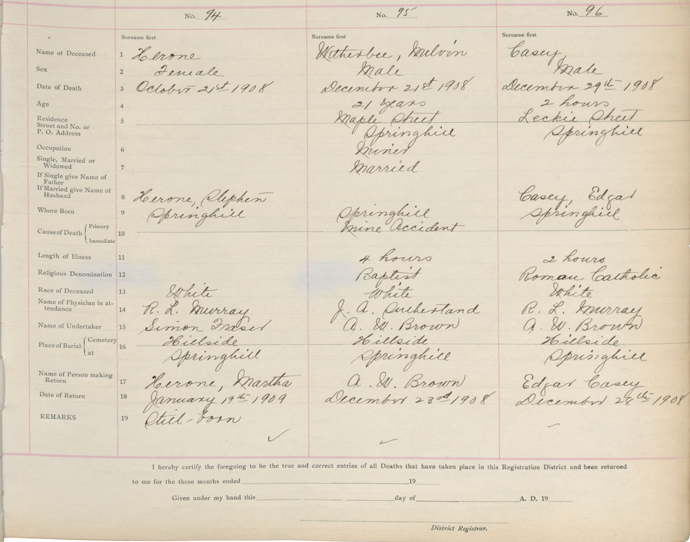 Death Registration: Year: 1908 book: 5 page: 16 number: 96