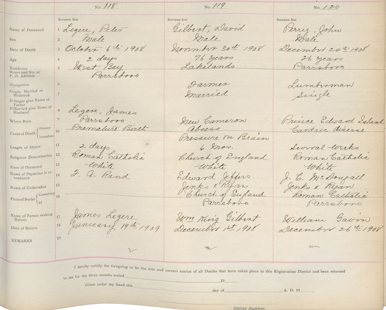Death Registration: Year: 1908 book: 5 page: 20 number: 120
