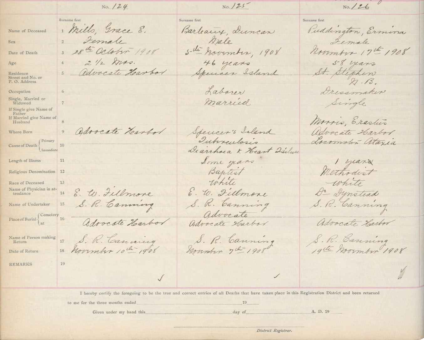 Death Registration: Year: 1908 book: 5 page: 21 number: 126
