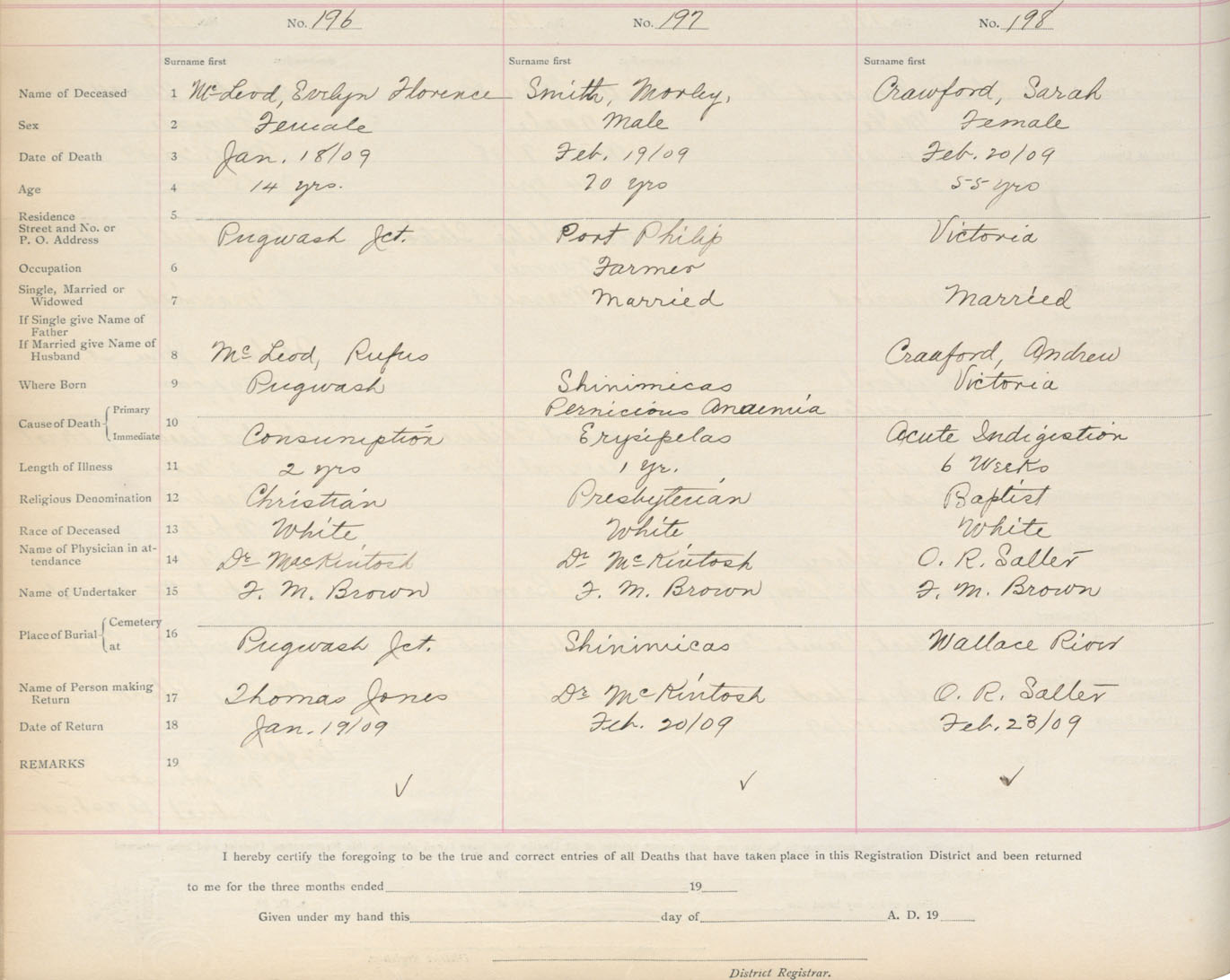Death Registration: Year: 1909 book: 5 page: 33 number: 196