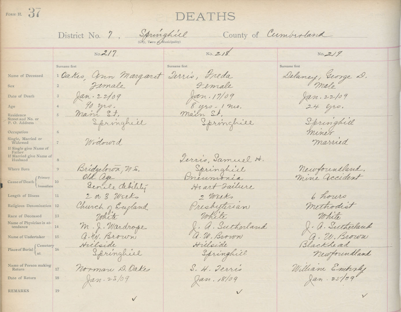 Death Registration: Year: 1909 book: 5 page: 37 number: 217