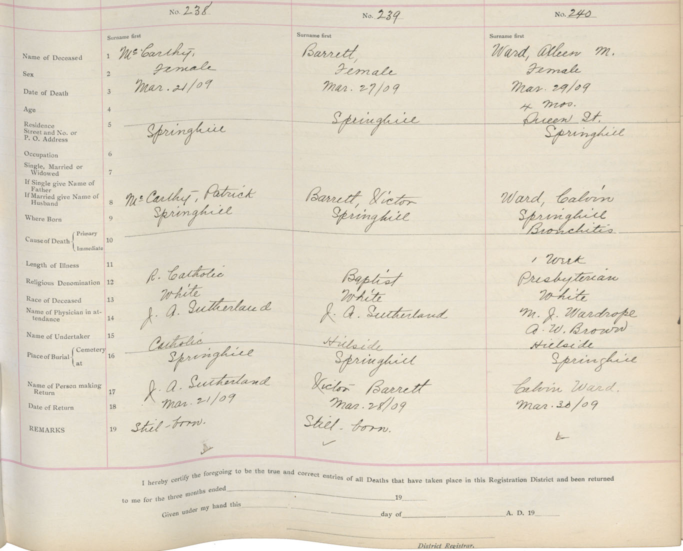 Death Registration: Year: 1909 book: 5 page: 40 number: 238