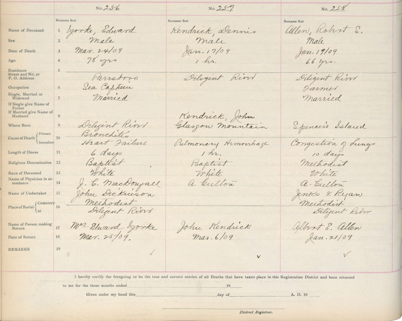 Death Registration: Year: 1909 book: 5 page: 43 number: 256