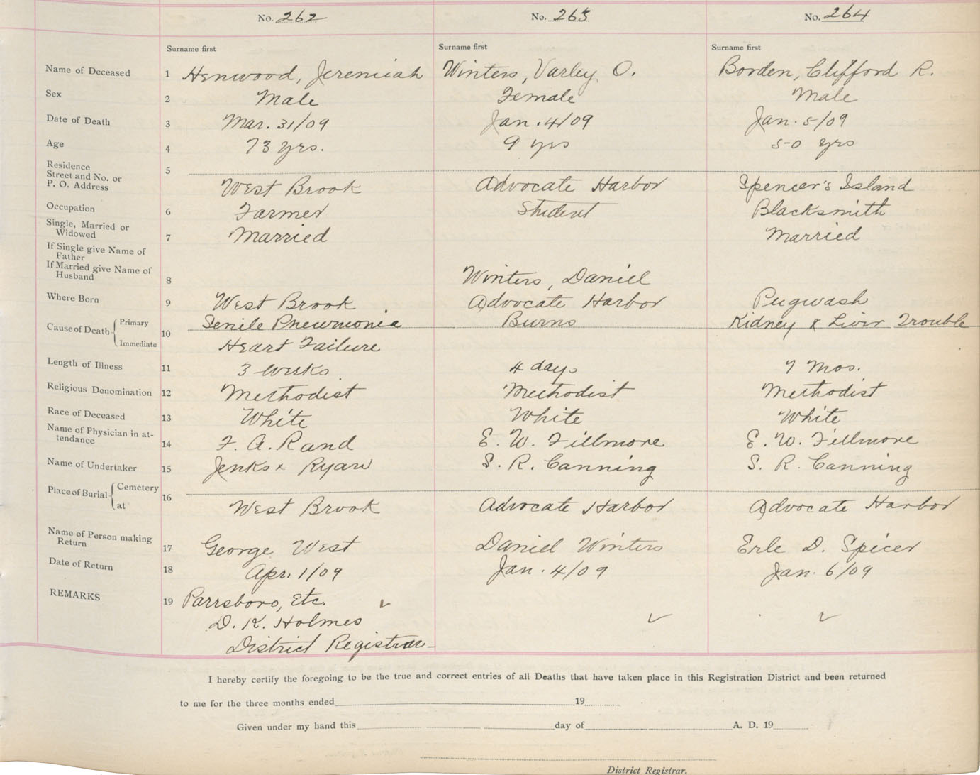 Death Registration: Year: 1909 book: 5 page: 44 number: 262