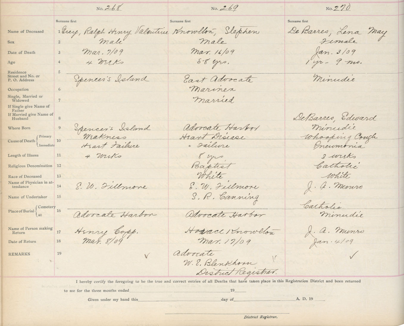 Death Registration: Year: 1909 book: 5 page: 45 number: 268