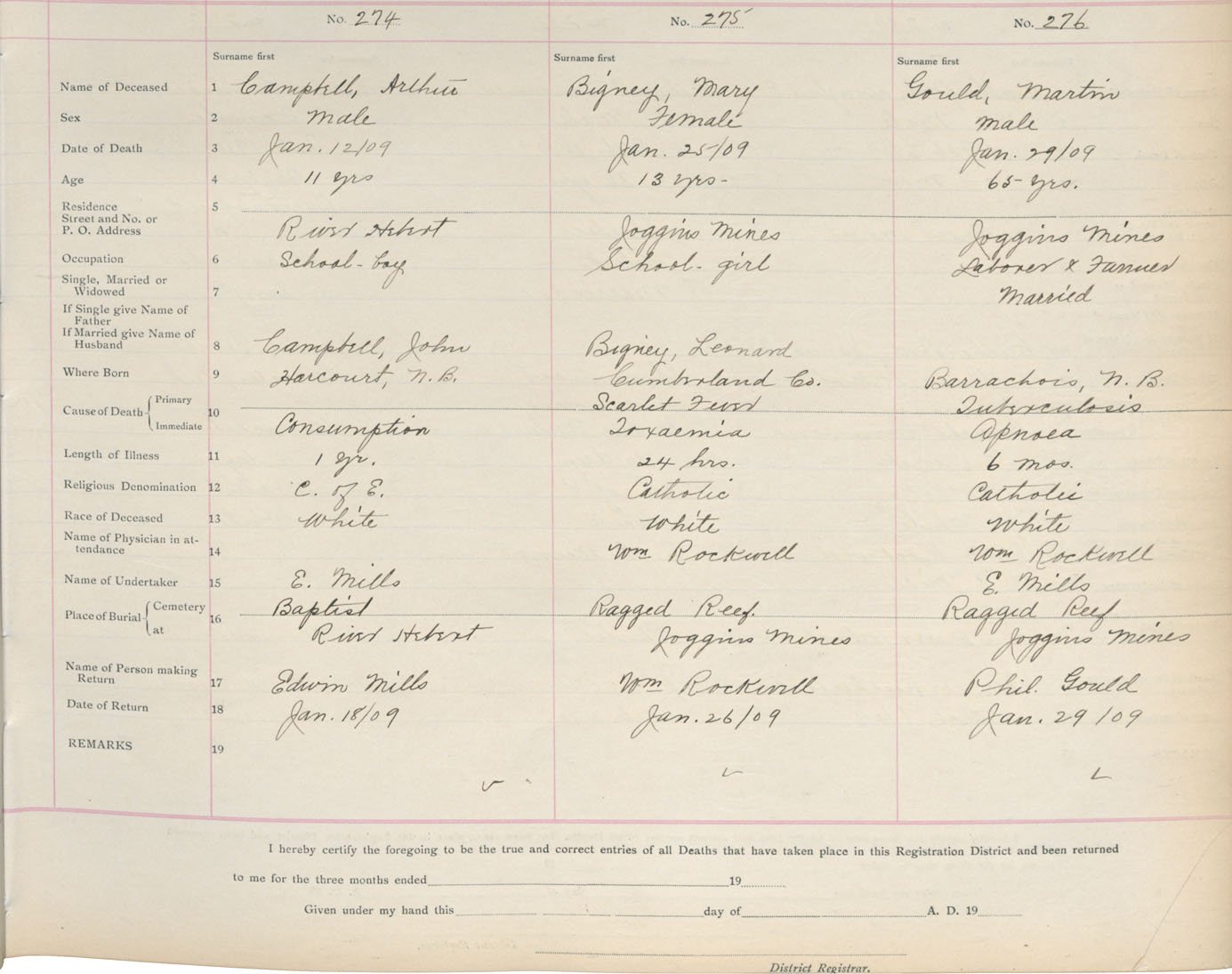 Death Registration: Year: 1909 book: 5 page: 46 number: 274