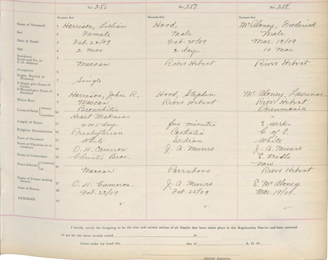 Death Registration: Year: 1909 book: 5 page: 48 number: 286