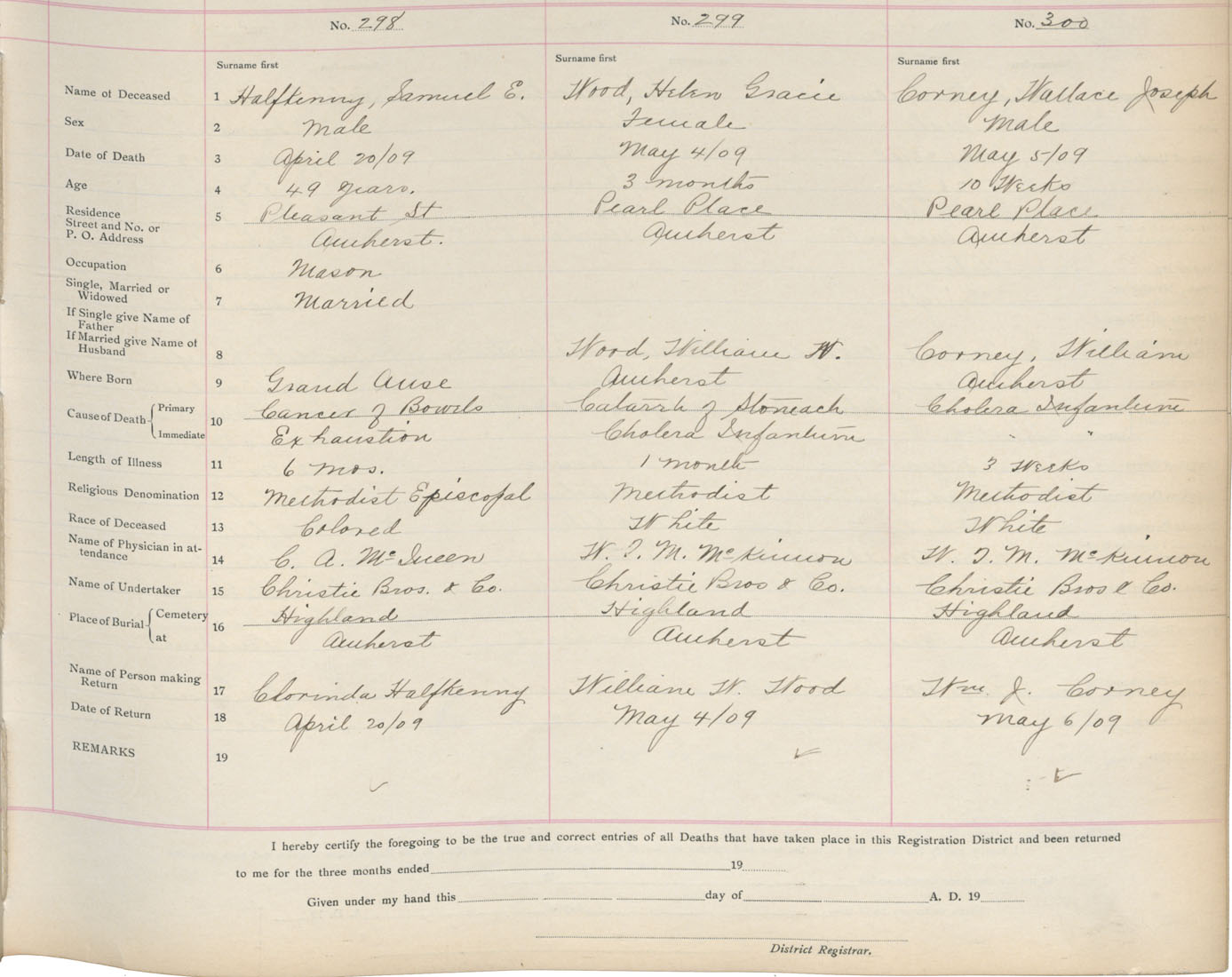 Death Registration: Year: 1909 book: 5 page: 50 number: 300