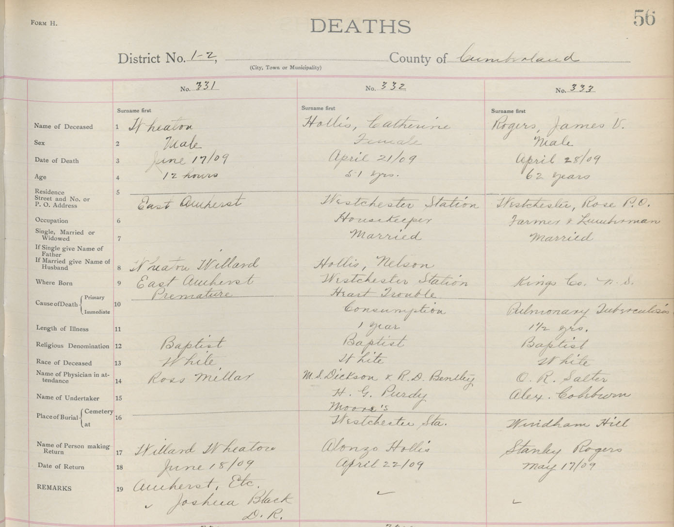 Death Registration: Year: 1909 book: 5 page: 56 number: 333