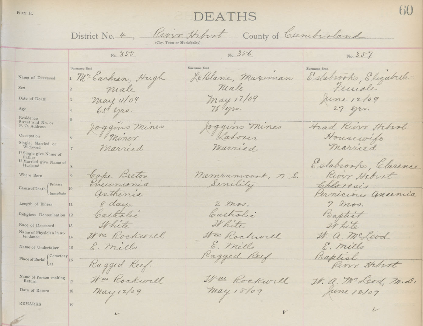 Death Registration: Year: 1909 book: 5 page: 60 number: 357