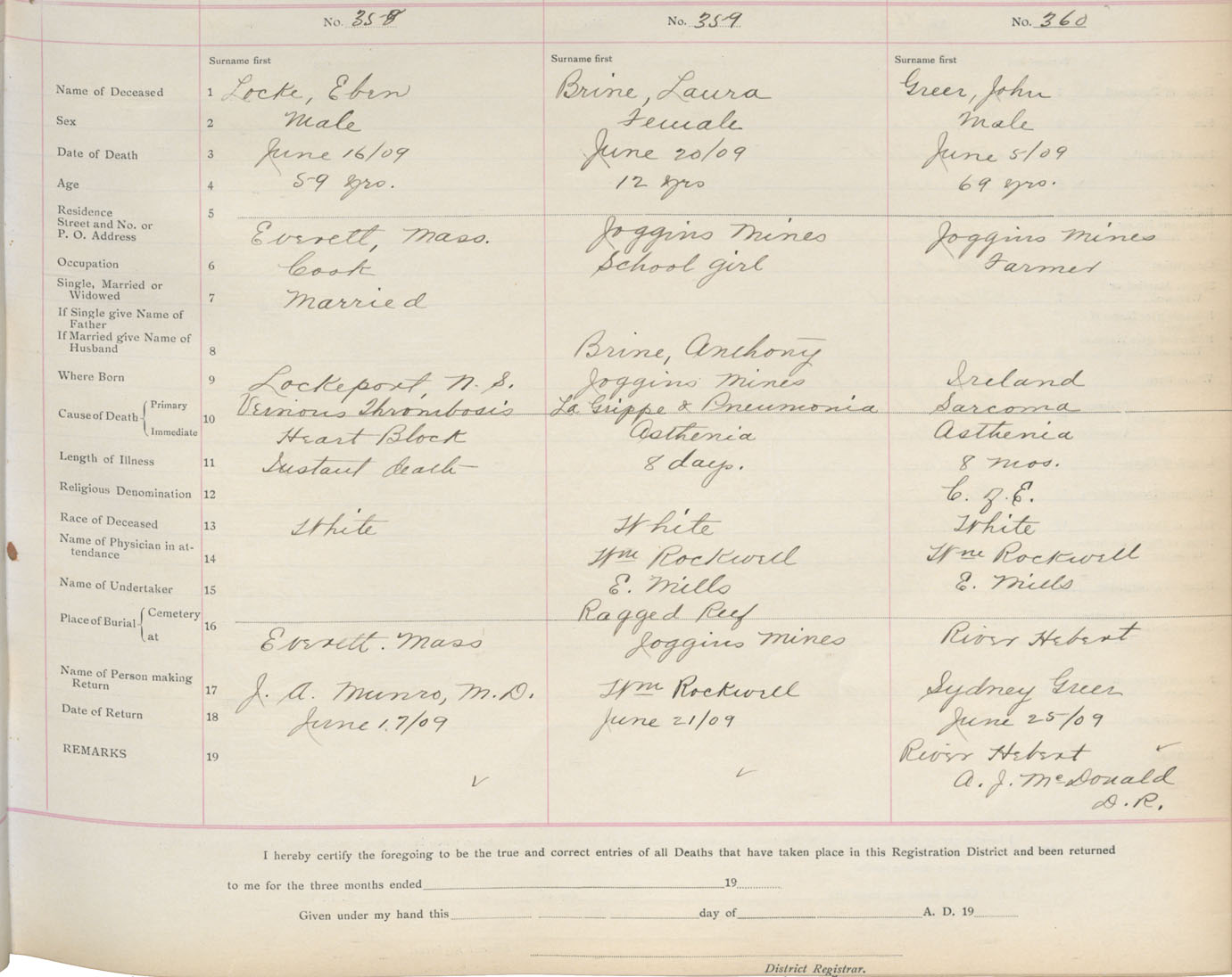 Death Registration: Year: 1909 book: 5 page: 60 number: 360