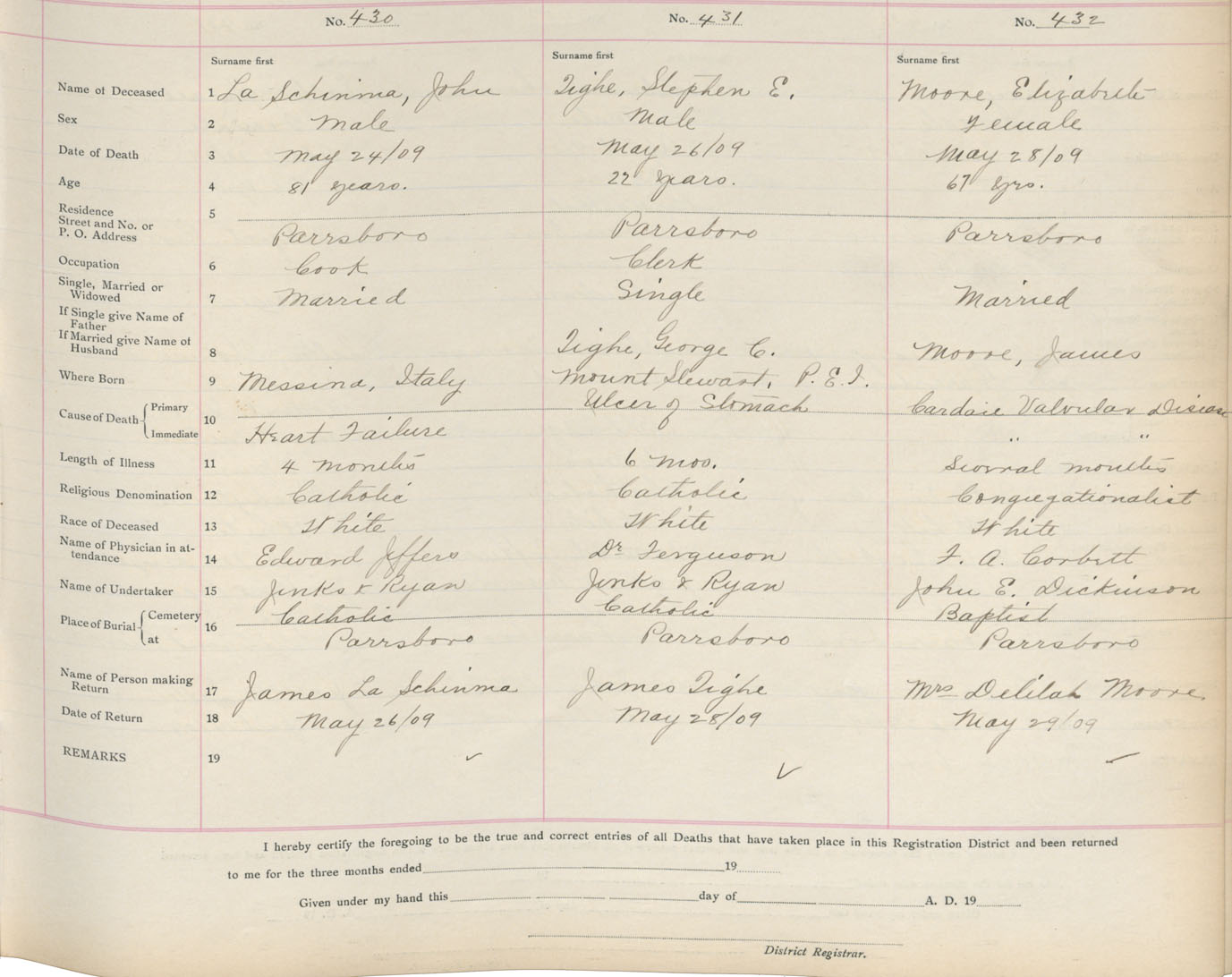Death Registration: Year: 1909 book: 5 page: 72 number: 430