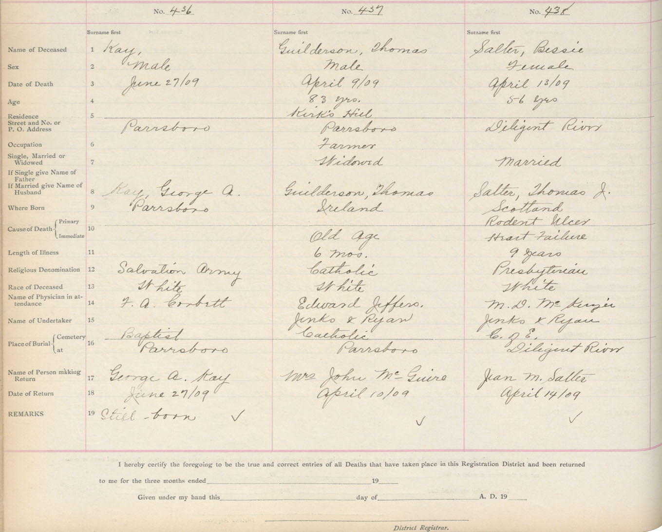 Death Registration: Year: 1909 book: 5 page: 73 number: 436