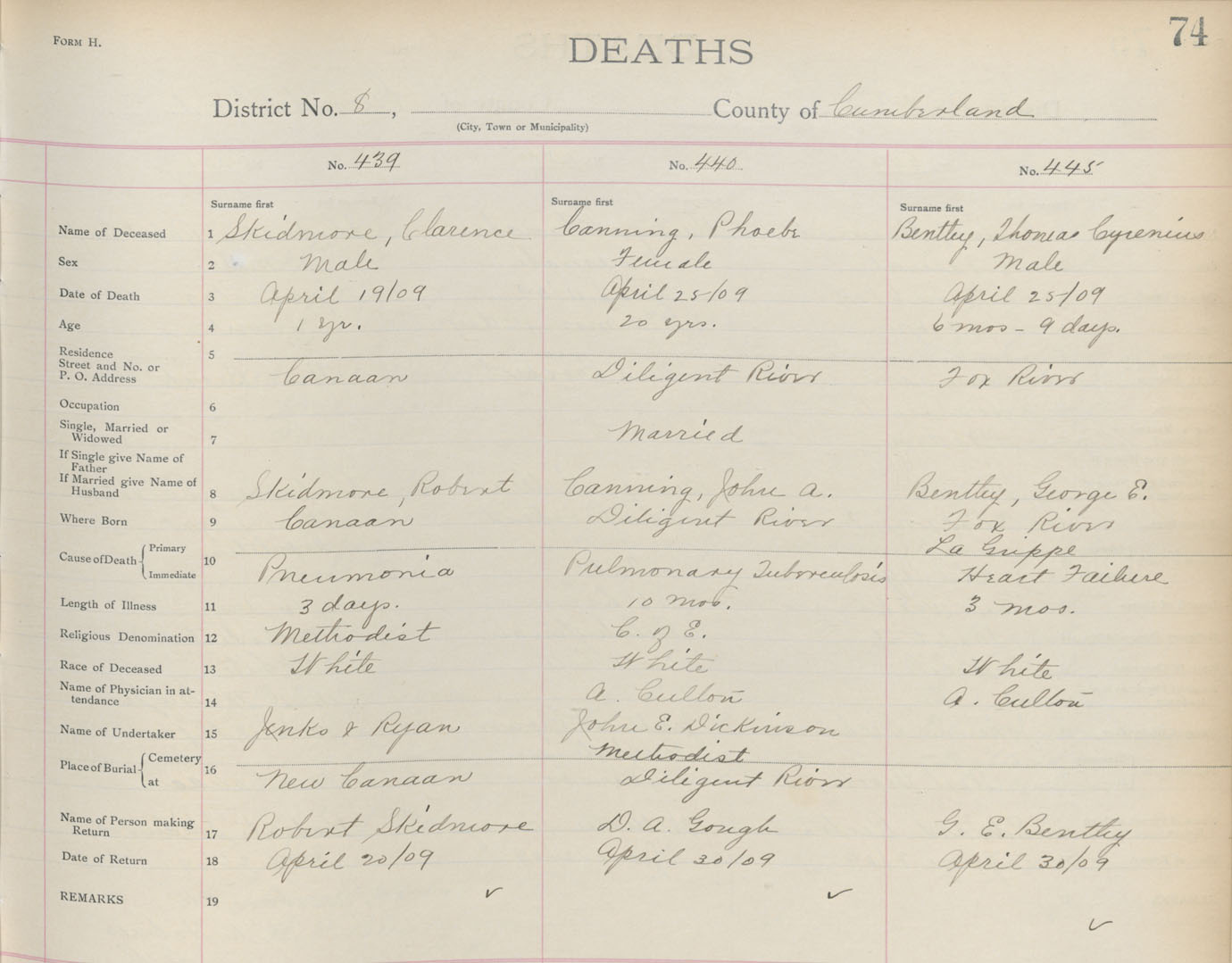 Death Registration: Year: 1909 book: 5 page: 74 number: 439