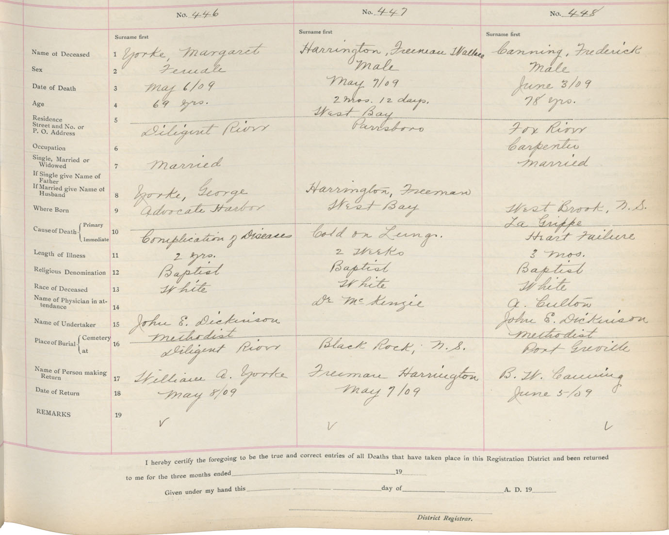 Death Registration: Year: 1909 book: 5 page: 74 number: 446
