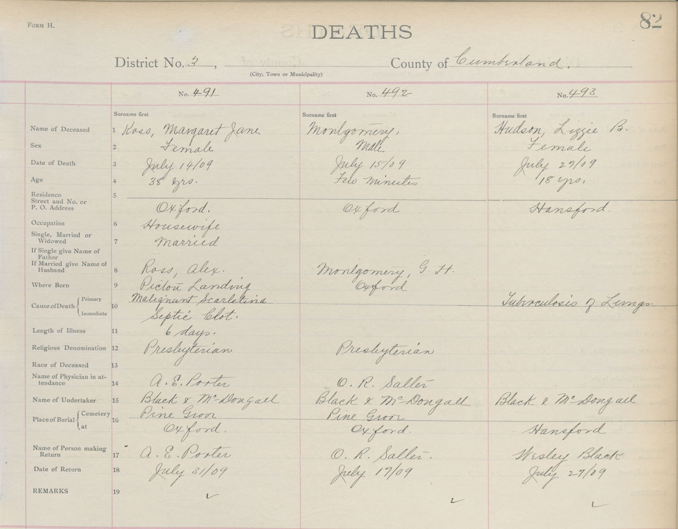Death Registration: Year: 1909 book: 5 page: 82 number: 493
