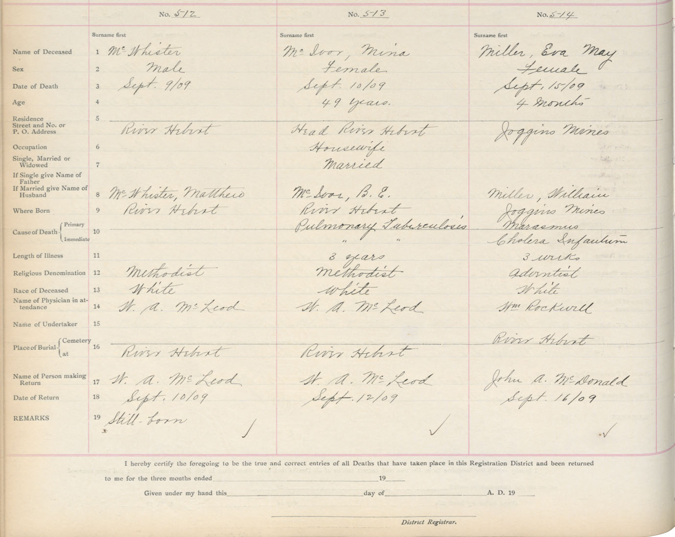 Death Registration: Year: 1909 book: 5 page: 85 number: 514