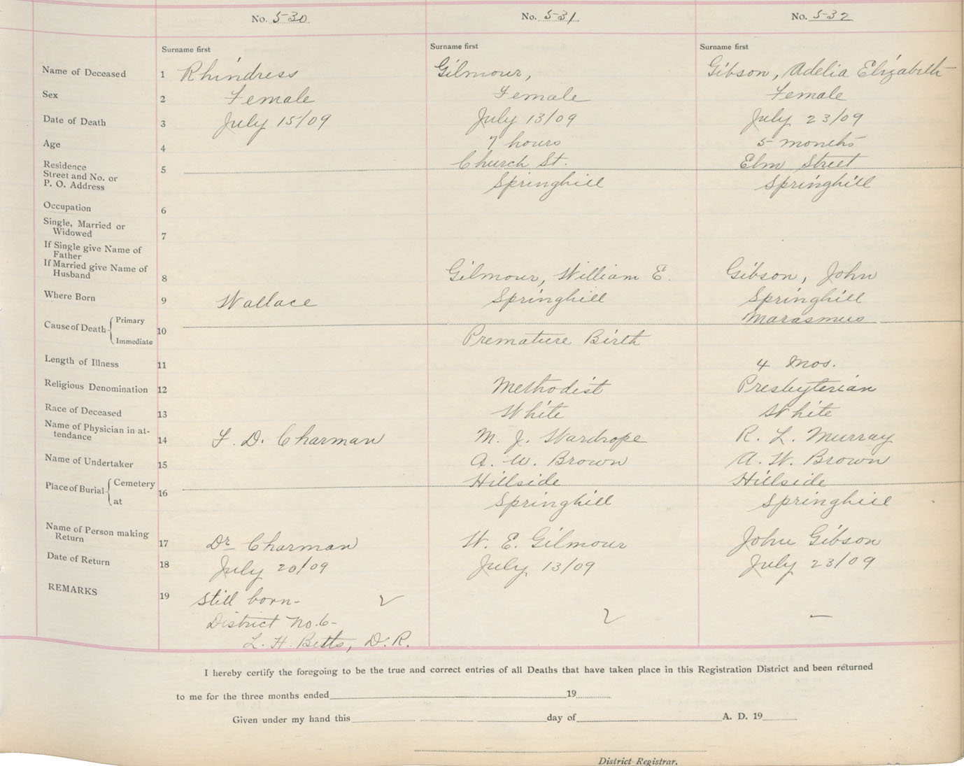 Death Registration: Year: 1909 book: 5 page: 88 number: 530