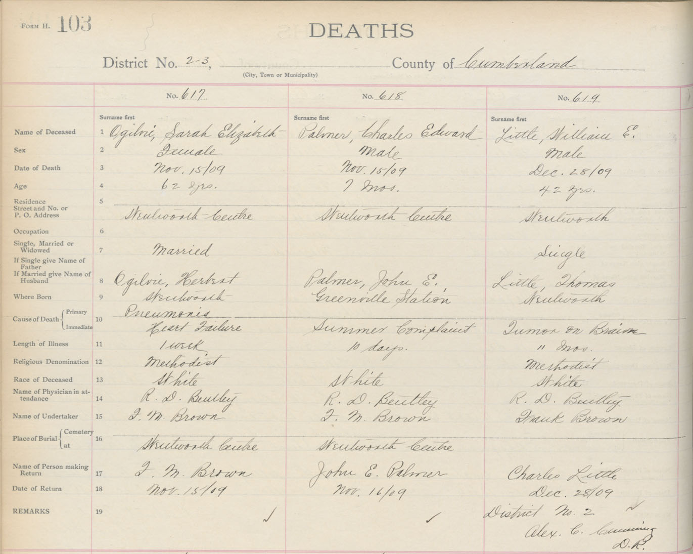 Death Registration: Year: 1909 book: 5 page: 103 number: 617