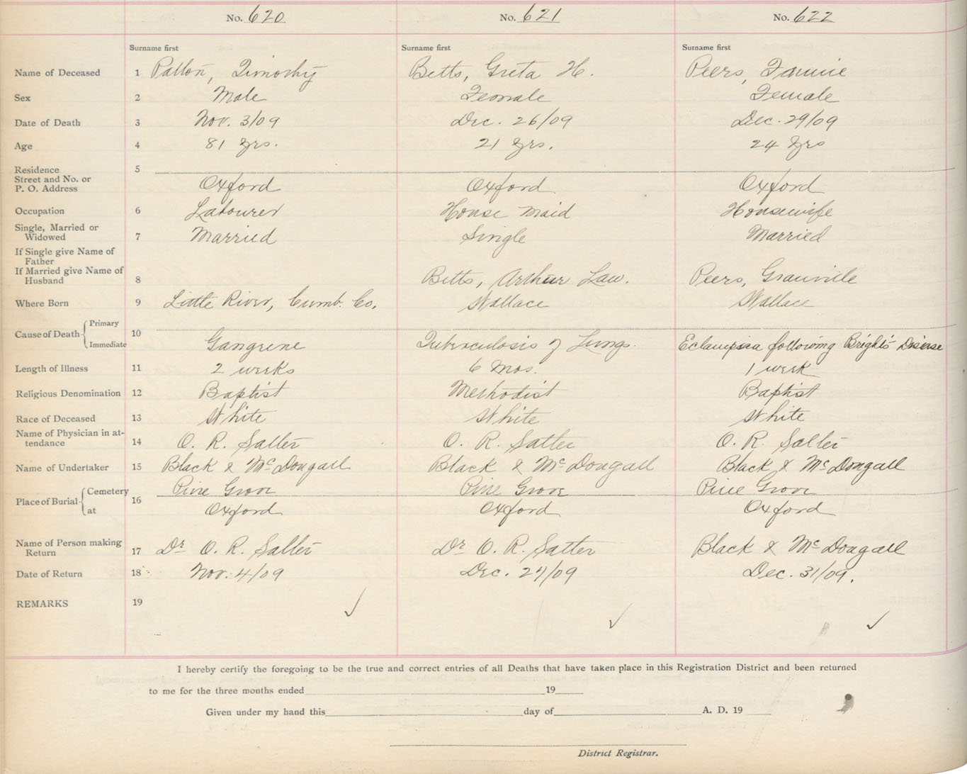 Death Registration: Year: 1909 book: 5 page: 103 number: 622