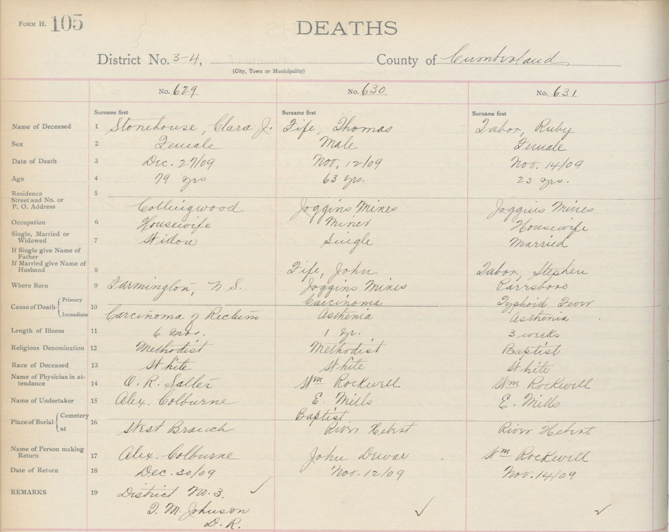 Death Registration: Year: 1909 book: 5 page: 105 number: 631