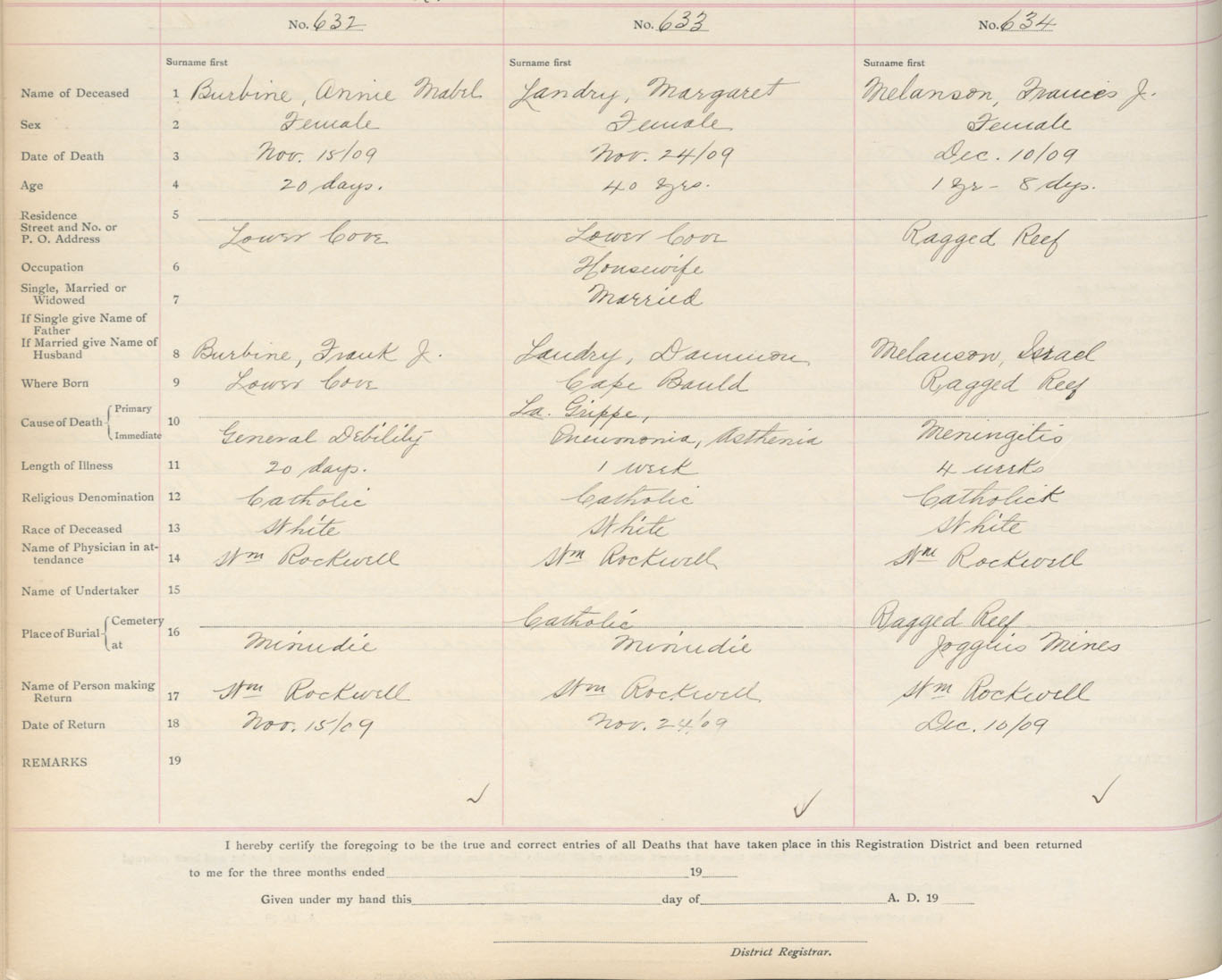 Death Registration: Year: 1909 book: 5 page: 105 number: 634